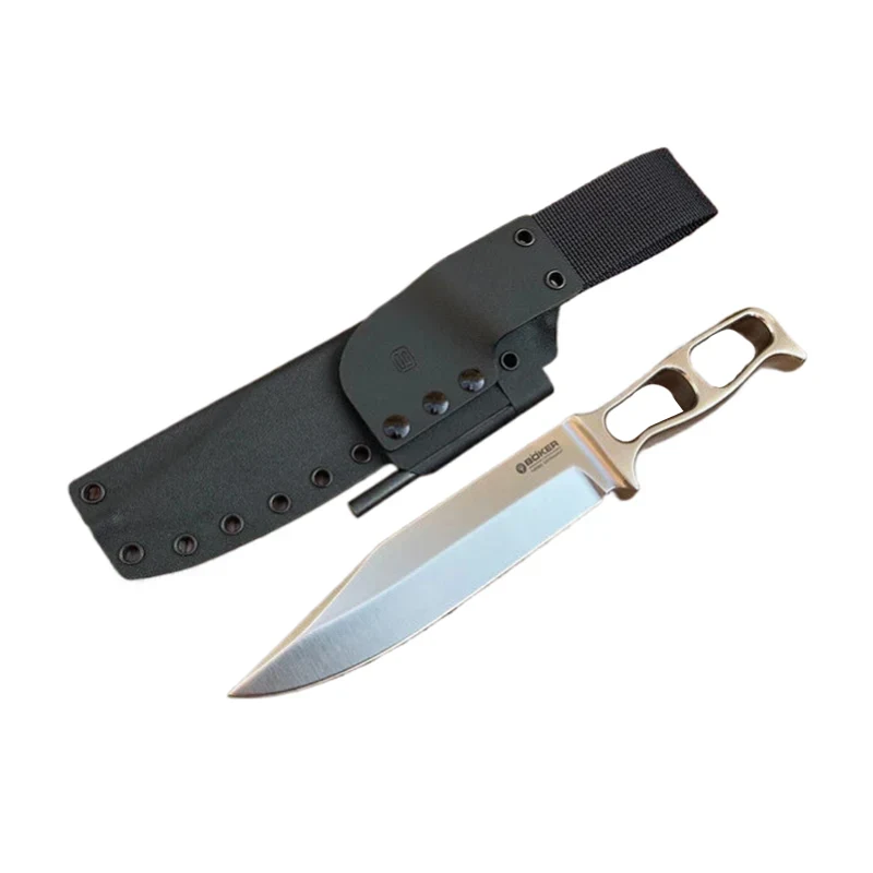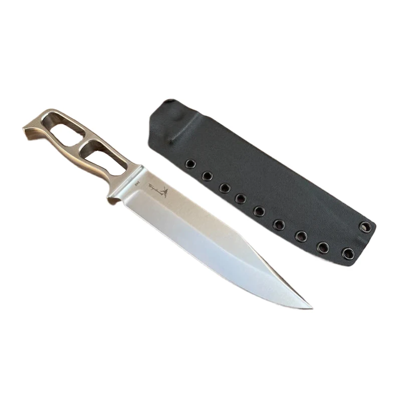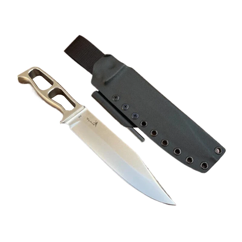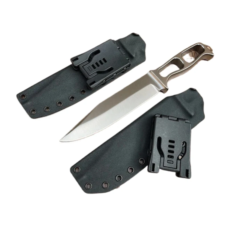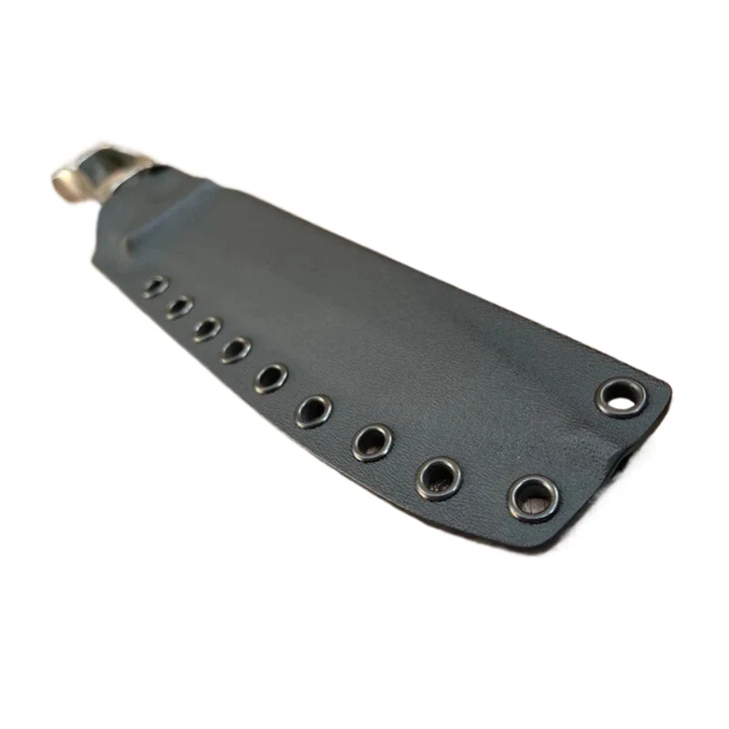 Kydex zorroa albo batean eta bi aldeetan begiekin eskuragarri dago. Belkroa ezin hobea da labana motxilaren uhalean lotzeko. Kydex zorroaz gain, suzko altzairuzko euskarria erantsi dezaket, aukeran suzko altzairuarekin (80 mm edo 100 mm-ko luzera).